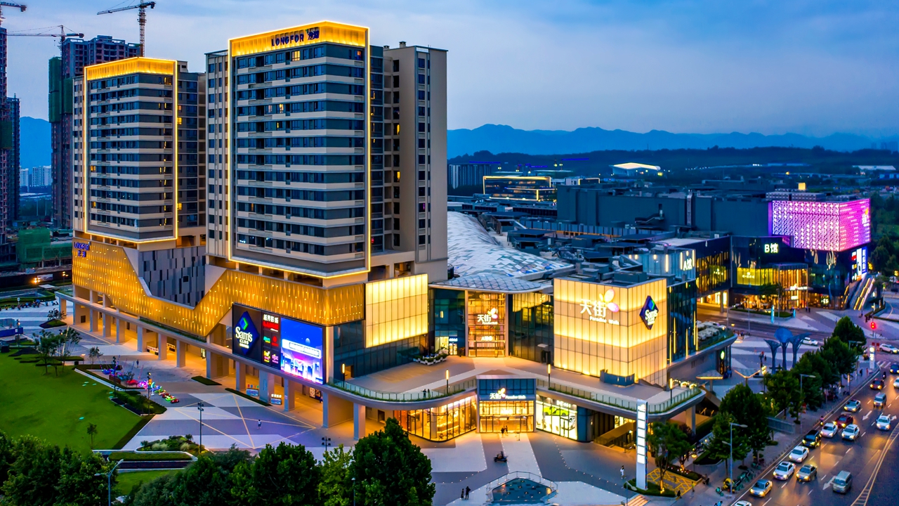 重慶禮嘉天街亮化方案采用動靜相結合的方式,為城市的夜景增添了亮麗的色彩!馳玖照明提供了從設計、預算、施工、調試一整套服務。